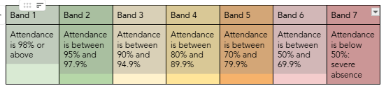 This year, we have focused on helping students understand the importance of attendance and the impact it has on their progress in school. To support this, we introduced attendance bands, breaking percentages into clear categories that make it easier for students to visualise where they currently stand compared to others. This approach allows us to support students in maintaining high attendance within Band 1, while also encouraging others in lower bands to set realistic goals to improve their attendance over the course of a term.